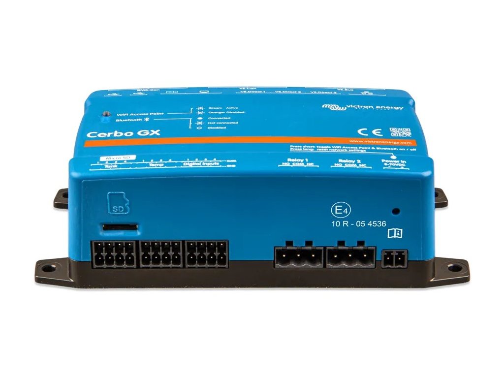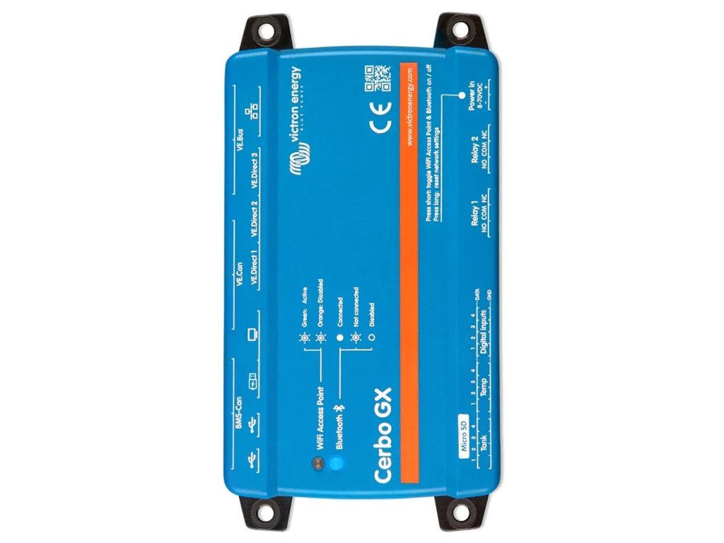 Toto inovativní komunikační centrum umožňuje bezpečně spravovat solární systém odkudkoliv a maximalizovat jeho výkon. Snadno se připojíte pomocí portálu na dálkové ovládání Victron Remote Management (VRM) nebo získáte přímý přístup prostřednictvím samostatného displeje GX Touch 50, multifunkčního displeje (MFD) nebo aplikace VictronConnect přes Bluetooth. Tato novinka v sérii GX spojuje všechny nejlepší vlastnosti konektivity a přináší inteligentní řešení pro energetické systémy ve zcela novém světle.