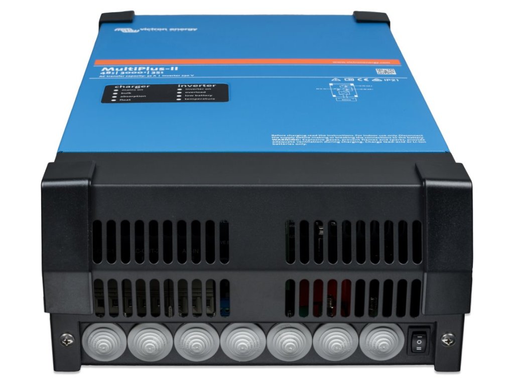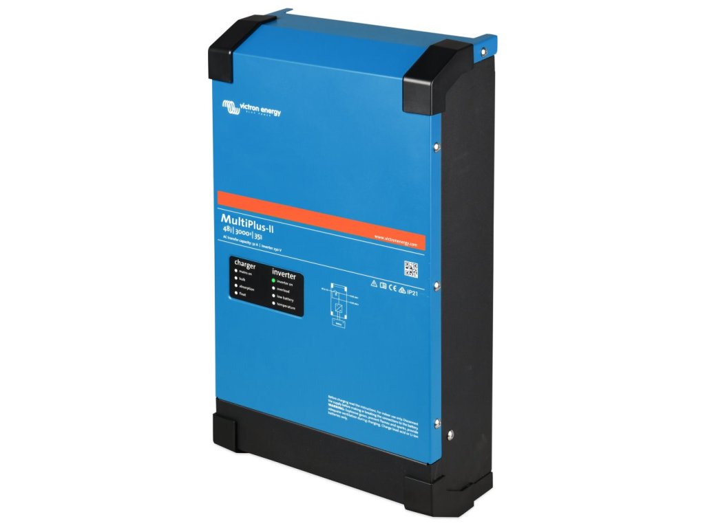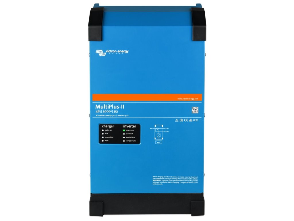 Victron MultiPlus-II 48V/3000VA/35A-32AMultiPlus-II je výkonný DC-AC hybridní měnič/nabíječ s čistě sinusovým výstupem, integrovanou adaptivní nabíječkou baterií a ultra rychlým transferovým přepínačem zdroje napájení - baterie/zdroj (externí AC).