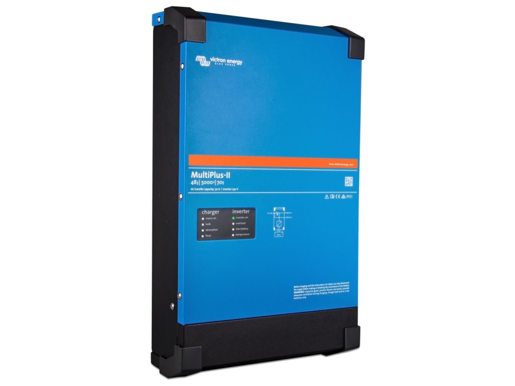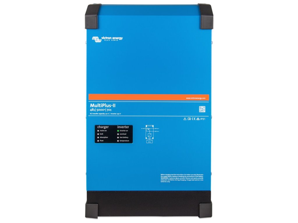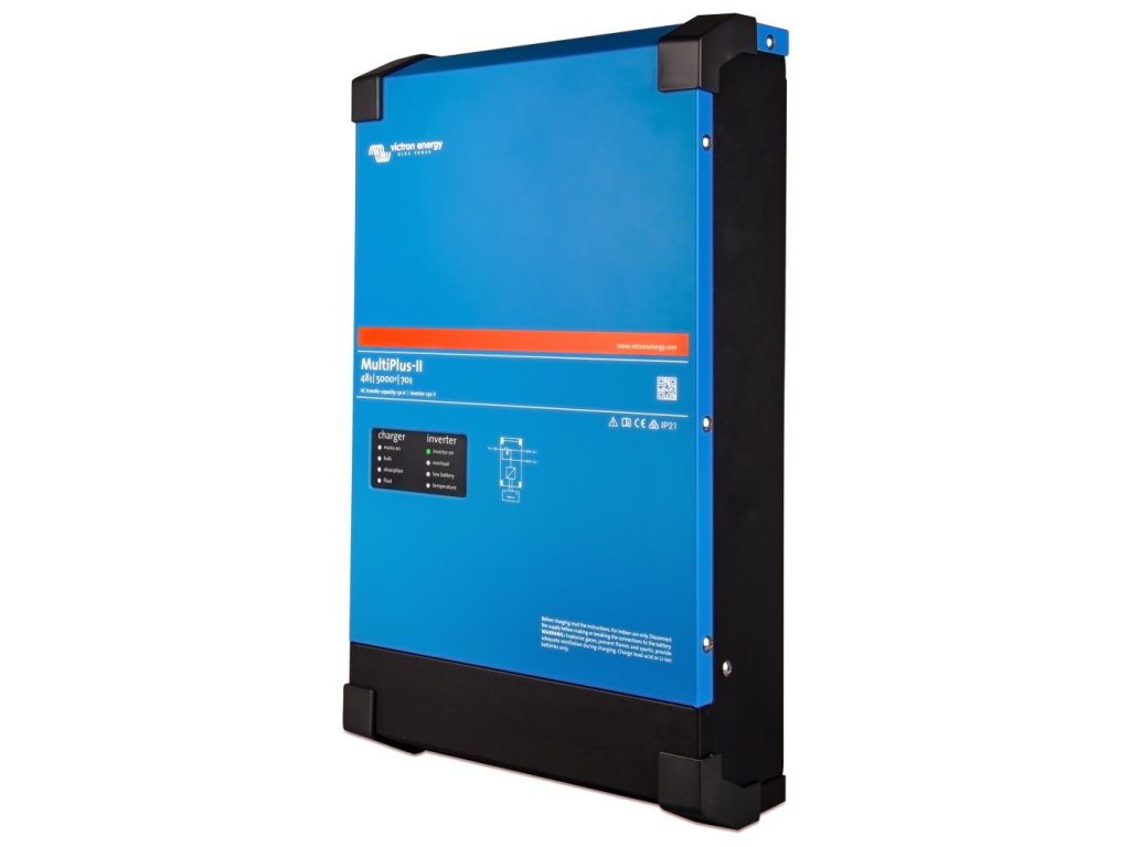 Victron MultiPlus-II 48V/5000VA/70A-50AMultiPlus-II je výkonný DC-AC hybridní měnič/nabíječ s čistě sinusovým výstupem, integrovanou adaptivní nabíječkou baterií a ultra rychlým transferovým přepínačem zdroje napájení - baterie/zdroj (externí AC).