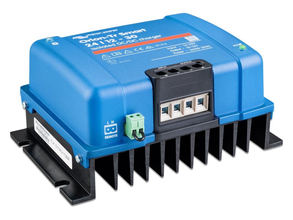 Nabíječka Orion Tr-Smart může být použita v 12 V nebo 24 V systémech a je vhodná jak pro olověné baterie, tak i pro lithiové baterie. K dispozici jsou modely až do 400 W. Pro zvýšení výstupního výkonu můžete paralelně zapojit neomezený počet jednotek. Je vhodná pro použití při okolní teplotě až do 55 °C a při plném jmenovitém výstupním výkonu až do 40 °C.
