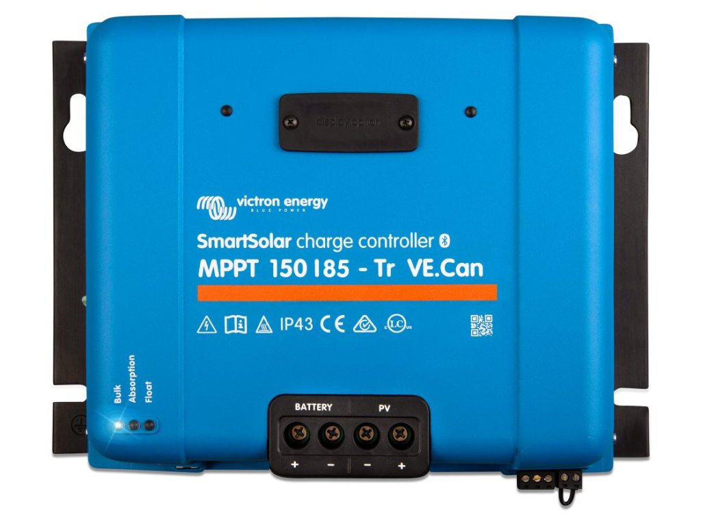 Victron SmartSolar 150/85-Tr VE.Can MPPTRobustní a rychlý MPPT regulátor s VE.Can pro náročné podmínky s napětím panelů až 150 V, nabíjecí proud 85 A. Baterie 12/24/48 V, FV max. 1200/2400/4900 Wp. Vestavěné Bluetooth a konektor pro zásuvný displej.