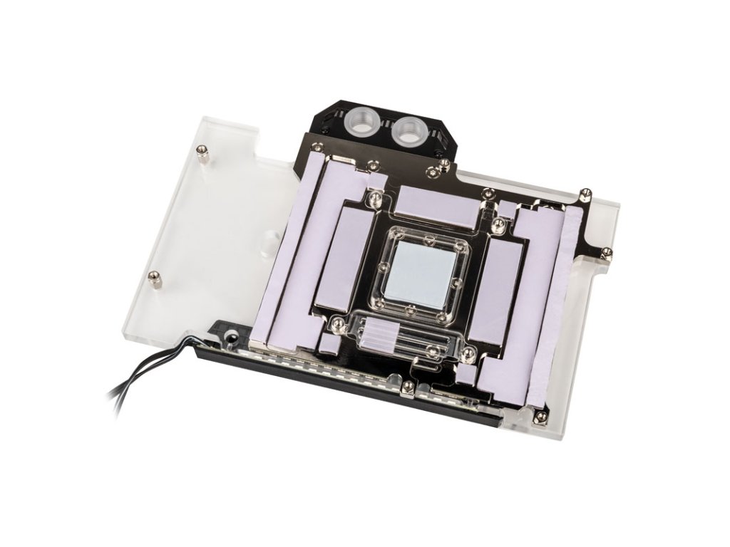 50 mikrokanálov umožňujú maximálny odvod tepla a poskytujú chladiaci povrch, ktorý dosahuje nízke teploty a umožňuje vysoký výkon. Na dosiahnutie tohto cieľa je chladiaci blok vyrobený z poniklovanej medi.Osvetlenie RGB na svetelné efekty