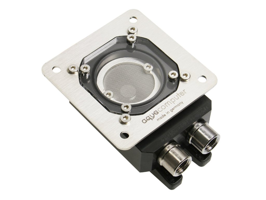 Známy výrobca aqua computer sa s týmto problémom vysporiadal a navrhol veľmi kvalitný oceľový filter, ktorý je umiestnený v elegantnom puzdre a je aj vizuálnym spestrením. Základné telo je vyrobené z čierneho delrínu - vysokopevnostného plastu. To je pripevnené pomocou plechu z nehrdzavejúcej ocele a štyroch otvorov. Filter je možné inštalovať horizontálne aj vertikálne - napríklad v prednej časti alebo vo veku.