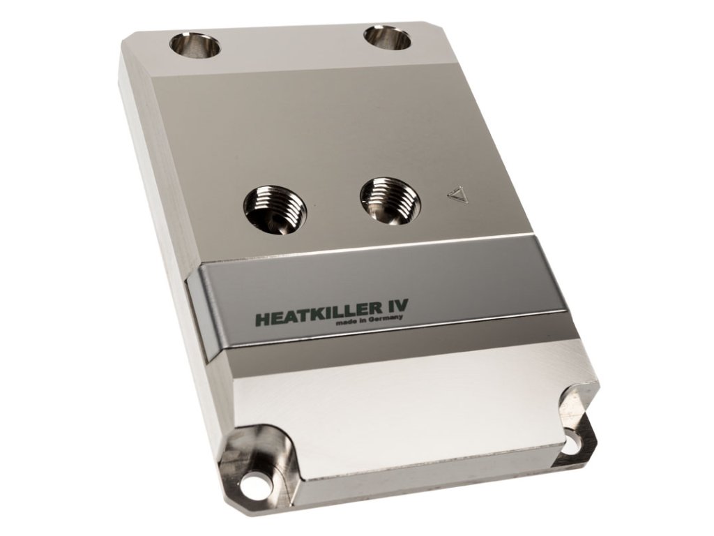 Najväčšiu revíziu v porovnaní s predchádzajúcimi verziami prešielHeatkiller IV chladiacej konštrukcie. Vďakarafinované mikrofíny chladiace médium má teraz podstatne väčšiu styčnú plochu s chladičom, kde dochádza k prenosu tepla. Ďalej sa optimalizovalo aj správanie prívodu. V porovnaní s predchádzajúcim modelom sa vďaka týmto vylepšeniam zvýšil chladiaci výkon až o 3 stupne Celzia.Optimalizačné opatrenia sú prospešné aj pre prietok, najmä preto, žeChladenie vodou s Heatkiller IV má integrované veľkoobjemové rozdeľovacie kanály. Vodný chladič, ktorý je celý vyrobený z poniklovanej medi a je aj vizuálne veľmi príťažlivý, má pôsobivý dizajn s vysokým prietokom, vďaka čomu je ideálnym partnerom aj pre menej výkonné čerpadlá.