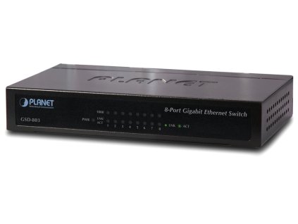 PLANET GSD-803; 8portový Gigabitový desktopový přepínač. Autodetekce rychlosti a typu kabelu. Kovová skříň. Energeticky efektivní ethernet zařízení podle 802.3az (EEE) a EuP,...