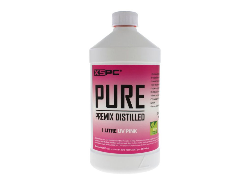 Čistá chladiaca kvapalina XSPC má vysokú tepelnú a nízku elektrickú vodivosť a vďaka svojim intenzívne jasným farbám je ideálnou chladiacou kvapalinou pre všetky systémy vodného chladenia. Tento premix je UV aktívny a fluorescenčný a primerane reaguje na osvetlenie UV svetlom, takže je ideálny pre farebné zostavy.