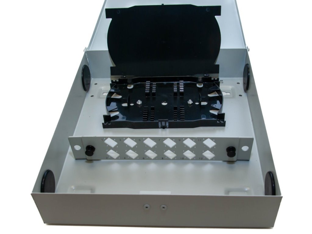 XtendLan OR038-12-SFCNástěnný optický rozvaděč pro 12 simplex adaptérů SC nebo 12 dual LC adaptérů, kovová skříň, kazeta na svarky.