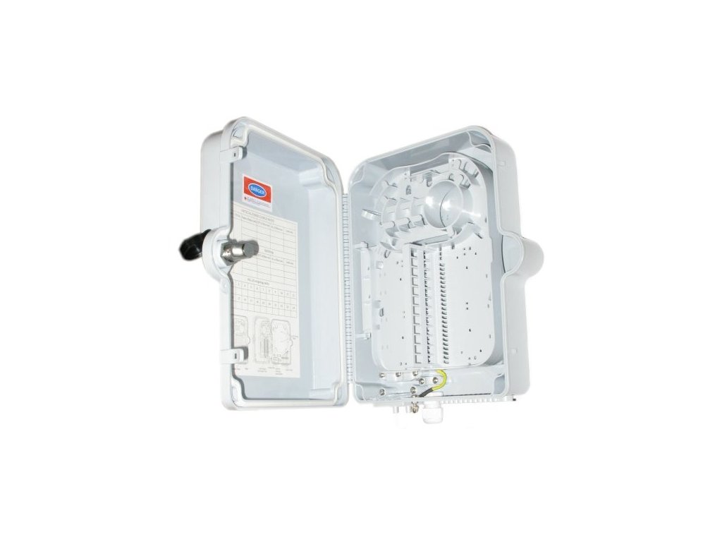 Typicky vhodné pro rozbočení vedení nebo napojení splitteru. Pro umístění splitteru je připravená pozice. Uzavření skříňky na šrouby a kličku.