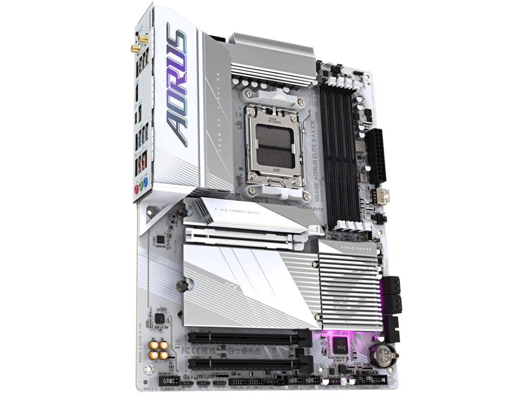 GIGABYTE B650E AORUS Elite AX ICE je vybavená čipovou sadou B650E pre procesory AMD radu Ryzen 7000 a ponúka množstvo funkcií pre overclockerov a hráčov. Keďže procesory Ryzen 7000 vyžadujú novú päticu kvôli podpore PCIe 5.0 a rozšírenému napájaniu, na základných doskách série 600 sa používa pätica AM5 (LGA 1718). Napriek zvýšenému počtu pinov zostáva skutočná veľkosť socketu identická so staršími socketmi, čo znamená, že na základnú dosku možno namontovať aj väčšinu chladičov CPU pre socket AM4.
