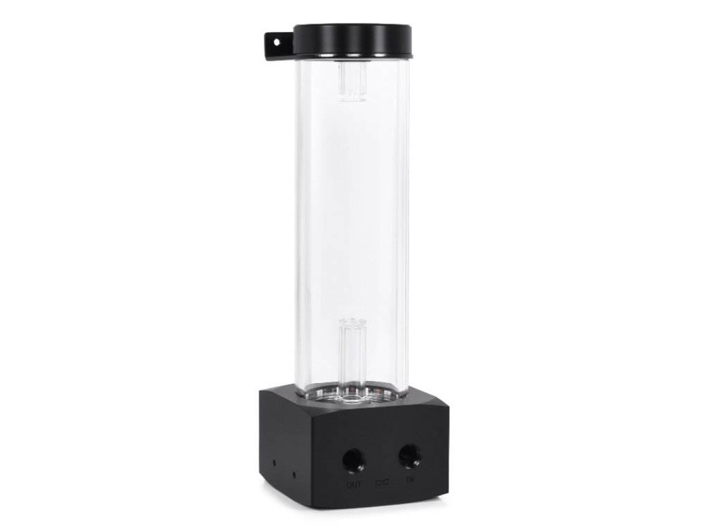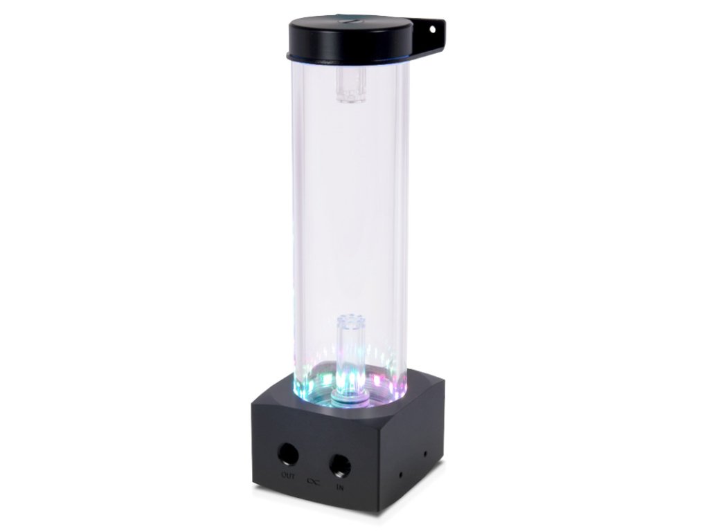Kvapalina sa do zásobníka čerpá cez stúpacie rúrky v strede. V závislosti od tlaku a prietoku saChladiaca kvapalina sa strieka na vonkajší akrylát, čím sa vytvára jedinečný efekt. Ak chcete jasne vidieť účinok, nemali by ste expanznú nádrž naplniť nad horný okraj rúrok.Integrované, adresovateľné osvetlenie RGB posúva podívanú na chladiacu kvapalinu na vyššiu úroveň. Pripája sa prostredníctvom 3-pinového konektora JST a možno ho ovládať pomocou digitálneho RGB ovládača alebo prostredníctvom priloženého adaptérového kábla so základnou doskou podporujúcou digitálne RGB.