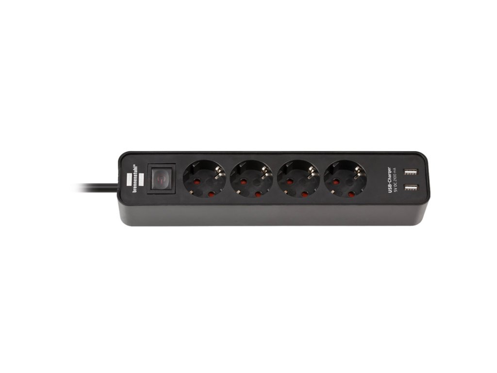 Zásuvková lišta Brennenstuhl Ecolor, 4-cestná, funkcia nabíjania USB - čierna