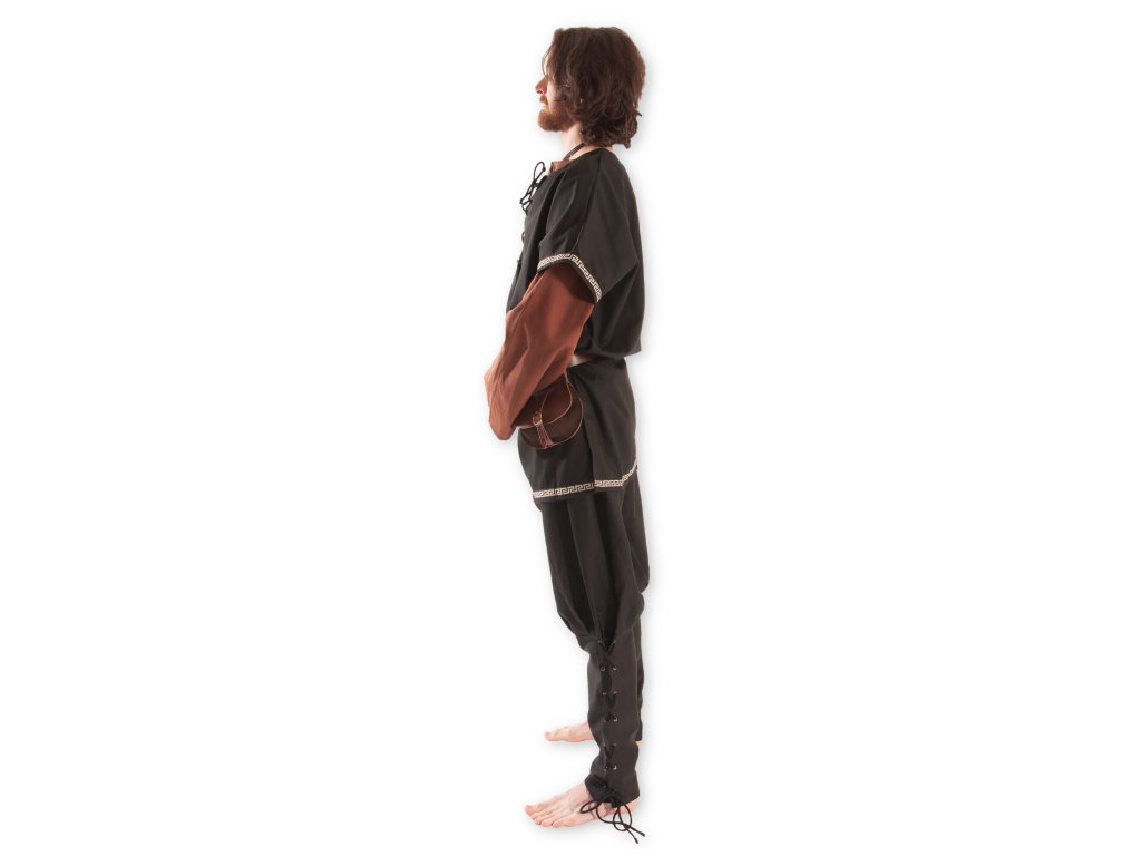 Sláva všem urozeným pánům, kteří dbají o blaho svého lidu stejně jako o svůj zevnějšek. Pánská tunika Lambert bude krásným svrchním šatem ke kostýmu vévodů, zámožných kupců i bardů, jejichž prořízlá pusa a tklivé balady v krčmě vydělají nejen na kus dobrého žvance. Svrchní tunika s krátkými rukávy lemovaná zdobným prýmkem a šněrováním u krku. Pro větší pohodlí a volnost pohybu je tunika opatřena rozparky na bocích. V kombinaci se zúženými kalhotami, spodní tunikou s dlouhými rukávy a koženým opaskem snadno vytvoříte honosnější kostým na larp. Opasek a doplňky nejsou součástí tuniky. Více o použitém materiálu se dočtete zde: popis materiálů.Diskusia