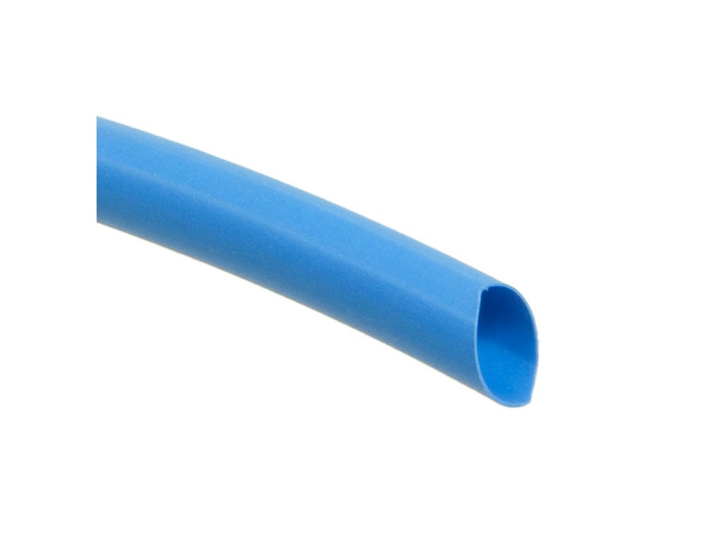 Ide o nepriehľadnú zmršťovaciu hadičku s priemerom 6,4 mm v modrej farbe s pomerom strán 3:1. Pri zahrievaní sa teda hadička zmršťuje maximálne trojnásobne, preto je minimálny priemer približne 2 mm. Hrúbka steny pri zmrštení je 0,7 mm. Objednané množstvo zodpovedá dĺžke zmršťovacej hadičky v metroch, ktorá sa dodáva v jednom kuse.