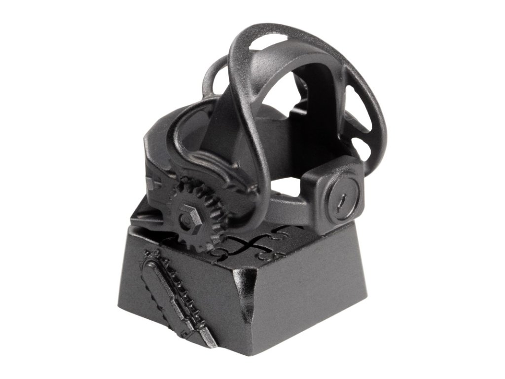 S dômyselne navrhnutými krytmi klávesov odZOMOPLUS klávesnicu si môžete prispôsobiť podľa vlastného vkusu. S láskou vytvorené umelecké diela sú vhodné prepre klávesnice s mechanickými spínačmi Cherry MX alebo spínačmi rovnakého typu iných výrobcov. Tu ponúkaný antracitový kryt klávesov sa skladá zhliník a zobrazujeobrátená pasca na medveďaako je známe z filmov Saw. Na boku jeReťazová píla symbolicky zobrazený na prednej strane jeBrána k slobode na obrázku.Technické údaje: