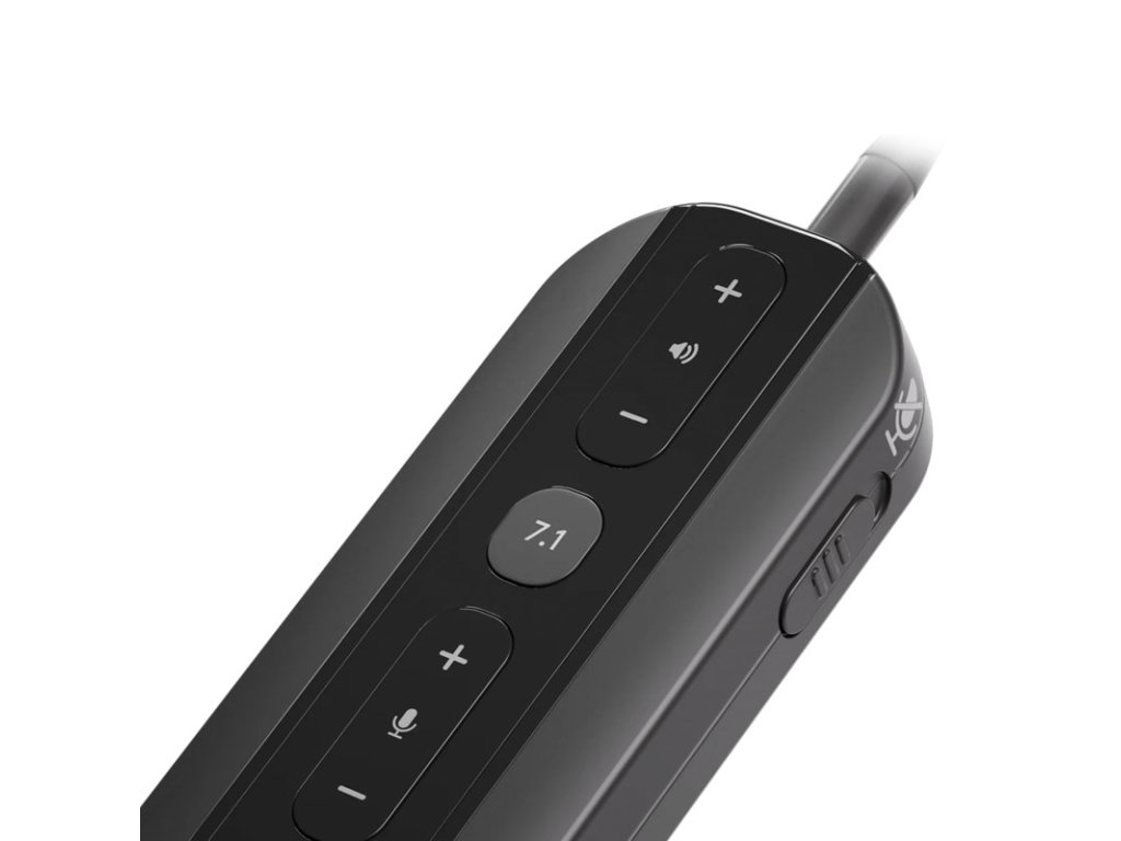 SFnatic REACT XP USB zvuková karta rozšíriť svojeanalógové slúchadlá Fnatic REACT na adresedigitálny priestorový zvuk 7.1. Na jednom konci pripojíte náhlavnú súpravu pomocou 4-pinového 3,5 mm konektora jack, druhý koniec 1,6 m kábla je pripojený pomocouUSB-A s počítačom so systémom Windows pripojené. Na zvukovej karte môžete nastaviť hlasitosť slúchadiel a mikrofónu a v prípade potreby ich stlmiť.